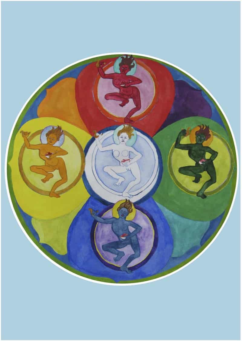 Dakini means “sky dancer” and more precisely translating to “that which dances with compassion through emptiness.” This refers to the nature of our mind when we transform the poisons into their natural state of the 5 shining wisdoms. The mind lights up with expansive love, compassion, and absolute wisdom of the universe.